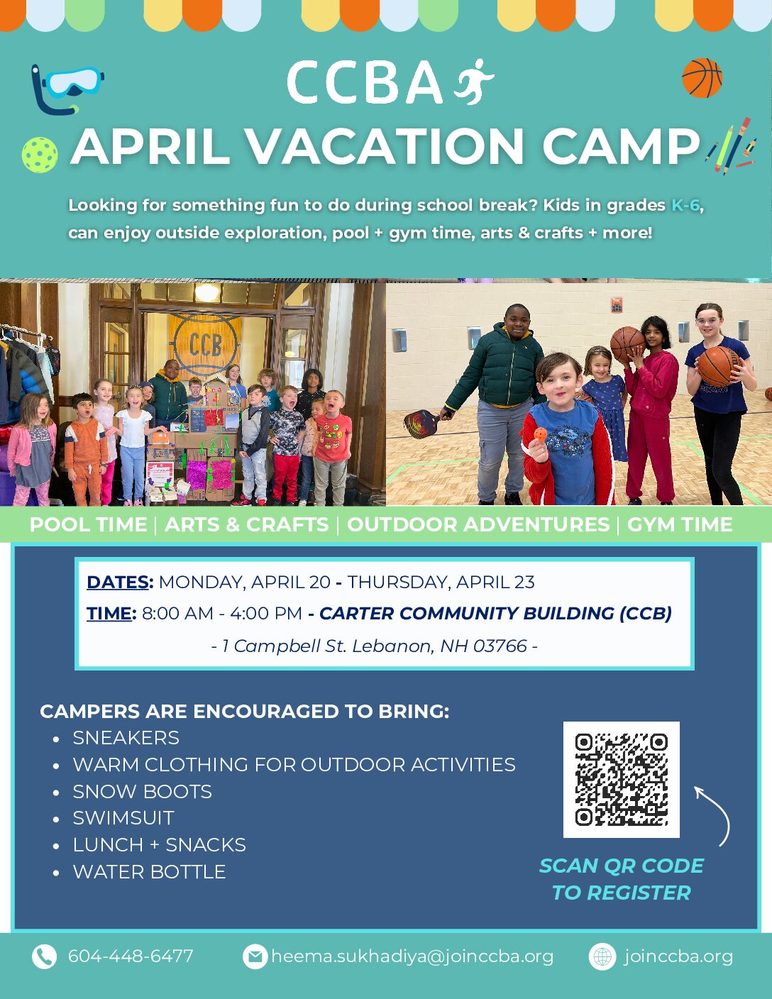 Vacation CampsLesson2026-02-27T11:26:36-05:00 The CCBA offers February and April vacation camps for children. REGISTER FOR CAMPS AT THE BOTTOM OF THIS PAGE